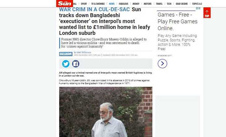 বুধবার প্রকাশিত এক প্রতিবেদনে দিনের আলোয় কুখ্যাত এই আলবদর নেতার নির্বিকার ঘুরে বেড়ানোর বেশ কিছু ছবি প্রকাশ করে তাকে ধরতে ইন্টারপোলের আদৌ কোনো তৎপরতা আছে কি না, সে ব্যাপারেই প্রশ্ন করেছে পত্রিকাটি। ম্যাট উইলকিনসন নামের দ্য সানের এক প্রতিবেদকের প্রতিবেদনে উঠে এসেছে, সাবেক এনএইচএস নেতা চৌধুরী মঈনুদ্দীন (৬৯) লন্ডনের শহরতলীতেই দিব্যি বসবাস করছে। নর্থ লন্ডনের সাউথগেটে ১ মিলিয়ন ব্রিটিশ পাউন্ড মূল্যমানের এক বাড়িতে সহজেই তাকে খুঁজে পায় ব্রিটিশ গণমাধ্যম সান।